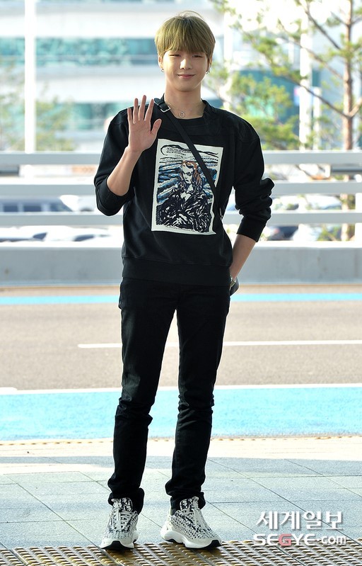 먼저 강다니엘은 싱가포르에서 진행되는 팬 미팅에 참석하기 위해 지난 14일 인천국제공항을 통해 출국했다. 이날 강다니엘은 강렬한 그림이 프린트된 검은 상의와 바지를 매치하고 심플한 공항 패션을 연출했다.
