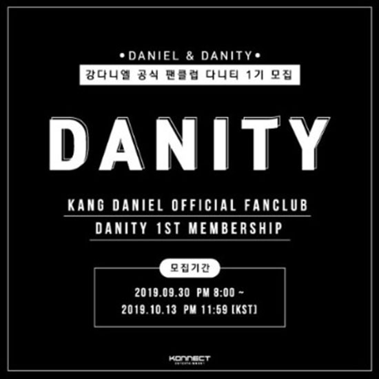 강다니엘의 공식 팬클럽 다니티 1기는 9월 30일부터 모집이 시작됐다. 마감은 13일까지이며, 모집은 공식 홈페이지 내 숍(SHOP) 페이지에서 받고 있다. 활동 기간은 모집 종료 후부터 1년이다.