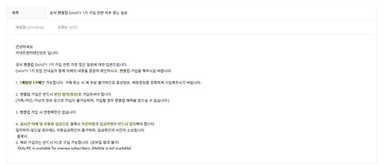 이는 공식 팬클럽 DANITY 1기 가입 관련한 질문 중 질문빈도가 높은 질문에 대한 답변을 모아 안내한 것이다.