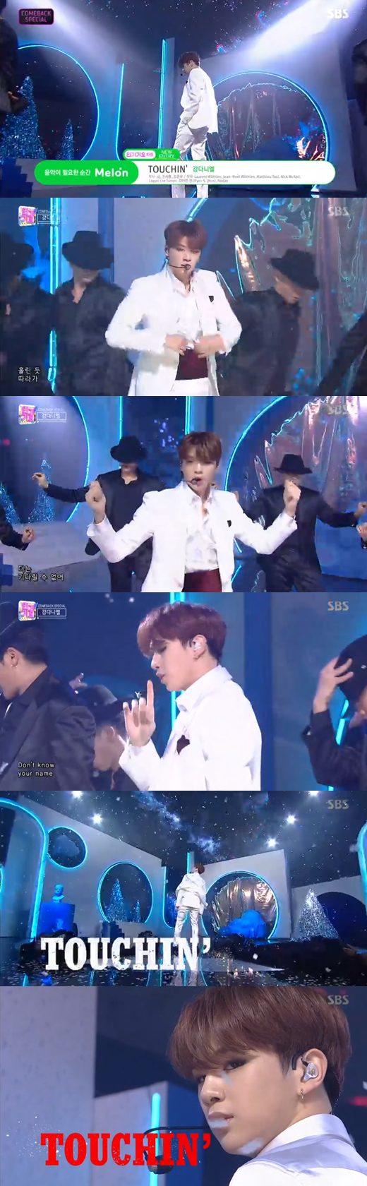 1일 방송된 SBS 음악 프로그램 '인기가요'에 강다니엘이 지난달 25일 발매한 'TOUCHIN' 무대를 최초 공개했다.