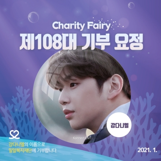 특히 강다니엘은 지난 1일, 12월 생일에 가장 많은 투표수를 받은 아이돌인 ‘12월의 기적’으로 선정돼 기부한 바 있다. 강다니엘은 지금까지 기부천사 34회, 기부요정 31회 선정되어 총 65회, 누적 기부금액 3,250만 원을 달성했다.