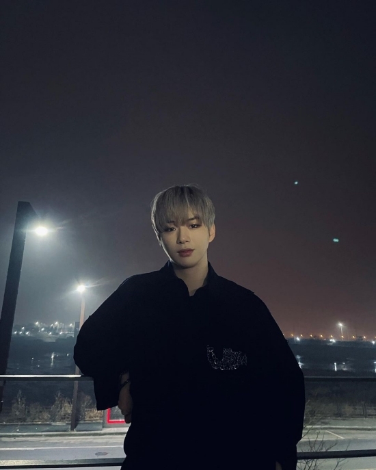 사진 속 강다니엘은 모처에서 포즈를 취하고 있다.