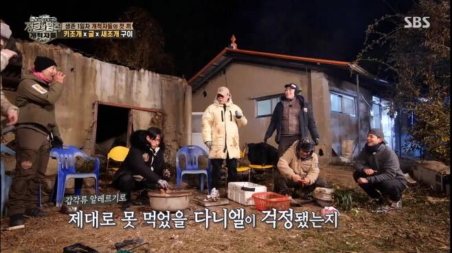 이날 멤버들은 옹기종기 모여 앉아 각자 잡은 재료로 저녁 식사를 준비했다. 김병만과 최성민이 구해온 조개, 장혁과 신승환이 채취한 굴이 노릇노릇 익어갔다. 김병만은 즉석에서 개불을 손질해 멤버들에게 맛을 보여줬다. 장혁은 갑각류 알레르기가 있어 해산물을 못 먹는 강다니엘을 위해 불판에서 돼지감자를 구웠다. 또 최성민은 직접 잡은 낙지를 배고픈 강다니엘을 위해 양보하며 훈훈한 분위기를 자아냈다.