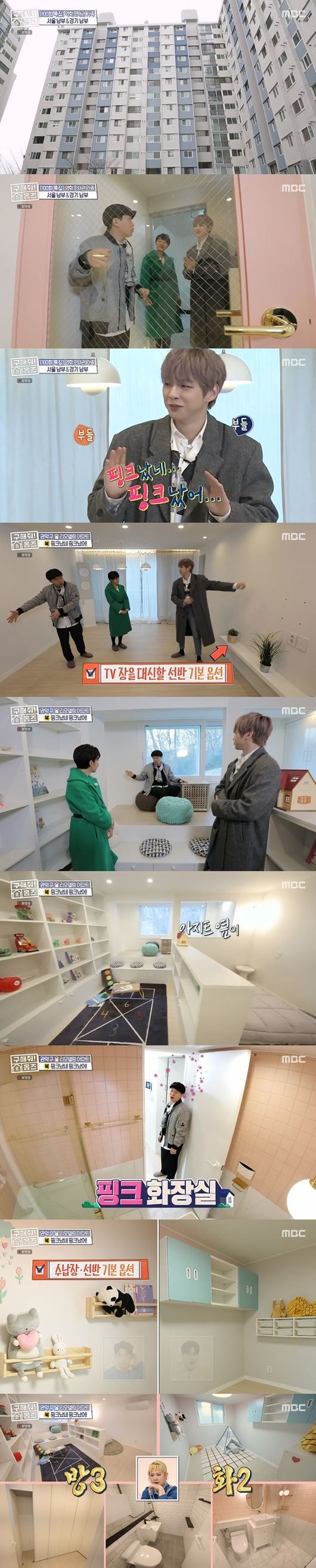 이후 세 사람은 관악구 신림동의 아파트를 공개했다. 이 매물 역시 올 리모델링한 매물로 현관을 열자 핑크톤으로 화사함이 물씬 풍겼다. 강다니엘은 "핑크났네 핑크났어"라며 매물 이름을 설명했다.