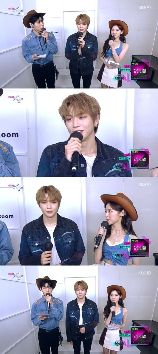 23일 오후 방송된 KBS2 ‘뮤직뱅크’에서는 1위 후보에 오른 강다니엘의 대기실 인터뷰가 공개됐다.