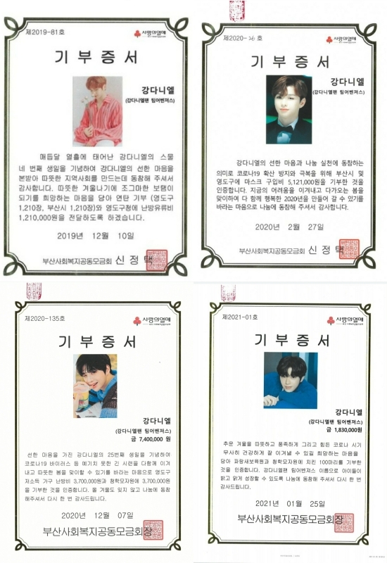 이어서 “좋은 마음은 나누면 더욱 커지고 나누는 만큼 더 많은 이웃이 행복해진다는 깨달음을 바탕으로 앞으로도 가수 강다니엘 님을 지지하고 응원할 것이다”라고 다짐했다.