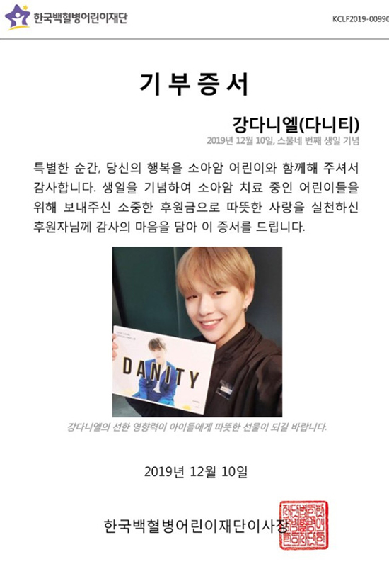 이러한 팬들의 기부 릴레이는 현재 휴식을 취하면서 안정을 찾는 중인 강다니엘에게도 큰 힘이 될 것으로 보인다.