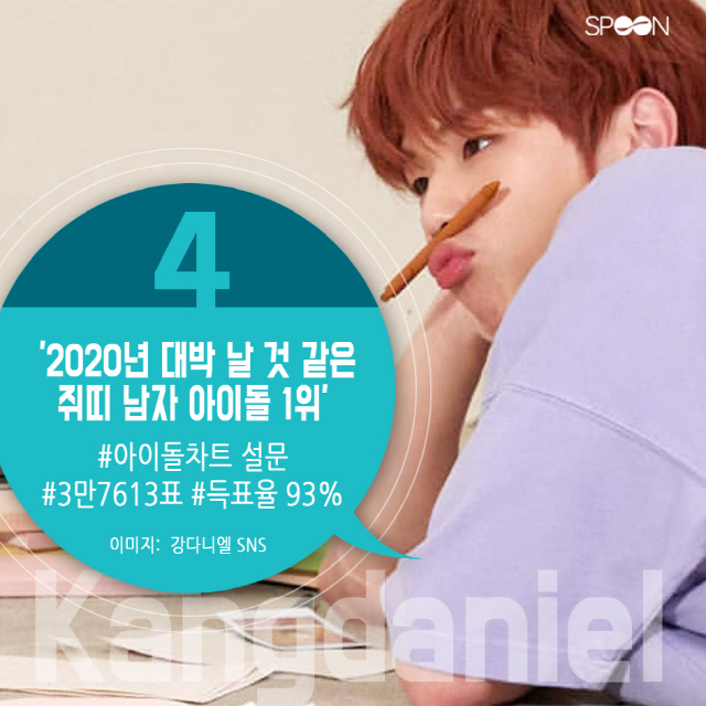 강다니엘은 대표적인 96년생 '쥐띠 아이돌스타'입니다. '2020년 대박 날 것 같은 쥐띠 남자아이돌 1위'에 선정되기도 했는데요. 활동 중단 선언에도 그는 팬들의 사랑과 응원에 힘입어 각종 랭킹 순위에서 1위를 차지하는 등 연초부터 독보적 행보를 이어가고 있습니다. 그가 다시 돌아온다면, 지난해 보여준 폭발적 영향력에 새해의 '좋은 기운'까지 더해 올